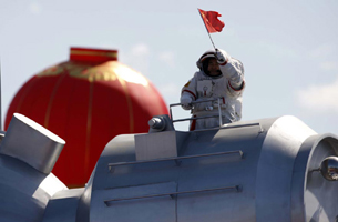 圖:黑龍江大學生揮舞國旗為祖國歡呼