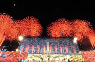 國慶聯歡晚會開幕 “60”字樣煙花綻放