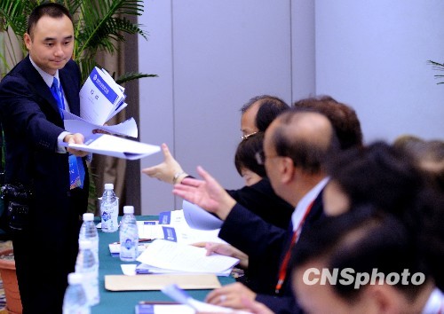 世界華文教育大會與會代表爭閱會議簡報