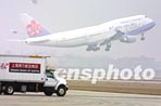 載有春節(jié)返鄉(xiāng)探親臺(tái)商及其眷屬"華航"包機(jī)飛離浦東機(jī)場(chǎng)
