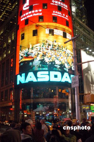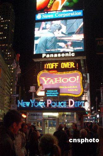 中國著名青年鋼琴家郎朗與中國愛樂樂團在北京第十屆國際音樂節(jié)上合作演出鋼琴協(xié)奏曲《黃河》,美東時間十月二十五日晚七時,紐約地標(biāo)時代廣場前的巨大電子顯示屏組進行轉(zhuǎn)播,吸引大量來自全球各地的旅游者和當(dāng)?shù)厝笋v足欣賞。中新社發(fā) 鄧悅 攝