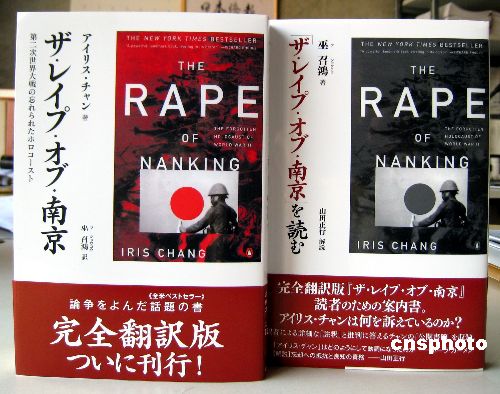 在“南京大屠殺”事件70周年之際,美籍華裔女作家張純如的歷史著作《南京大屠殺》日文譯本終于在日本出版發行。該書由在日華僑巫召鴻翻譯、日本同時代社出版。除了張純如原著翻譯本以外,《解讀<南京大屠殺>》同時出版,詳細介紹了《南京大屠殺》日文版歷經10年才得以面世的經過。中新社發 段躍中 攝