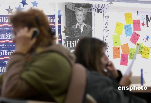 設(shè)于舊廠房中的希拉里舊金山競(jìng)選總部的義工期盼鼠年勝選。