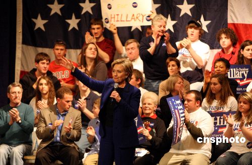 1月7日,美國民主黨總統競選人希拉里在新罕布什爾州的沙倫市進行該州初選前最后的競選活動。希拉里此前在艾奧瓦州初選落敗,目前在新州民調亦處于落后,競選形勢不容樂觀。中新社發 李靜 攝