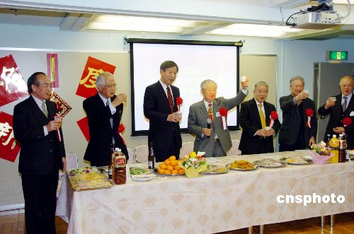 1月29日晚,東京日中友好會館后樂寮舉行2008年新春聯誼會,近200名中國留日學生及日中友好人士匯聚一堂,共迎新春。中國駐日本大使館公使銜參贊孫建明致辭。日中友好會館理事長村上立躬說,后樂寮是中國留學生之家,希望留學生學成歸國后為中國的建設貢獻力量。中新社發 段躍中 攝