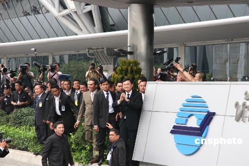 當地時間2月28日上午9點45分,泰國前總理他信結束了17個月的流亡生活,飛抵曼谷素萬那普國際機場。成千上萬的泰國民眾一大早就聚集在機場,熱烈歡迎他信回國。中新社發 顧時宏 攝