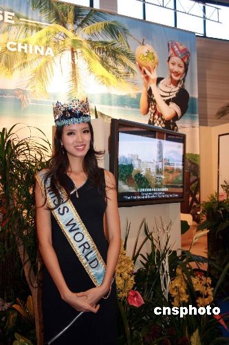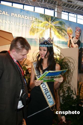 3月5日,2008柏林國際旅游展(ITB BERLIN)開幕,展覽為期5天將持續到9日。圖為第57屆世界小姐張梓琳作為“三亞形象大使”出現在展館。中新社發 關向東 攝