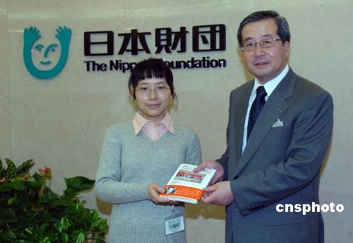 應主辦方日本僑報社日中交流研究所的邀請,第三屆中國人日語作文比賽最優秀獎得主——暨南大學日語系學生陳歆馨3月24日開始訪問日本。25日下午,陳歆馨在日本僑報社社長張景子的陪同下,拜訪了作文比賽特別贊助者日本財團。日本財團理事長尾形武壽鼓勵陳歆馨再接再厲,為中日友好作貢獻。據介紹,陳歆馨是在1400多名名參賽者中脫穎而出榮獲最優秀獎的。中新社發 段躍中 攝