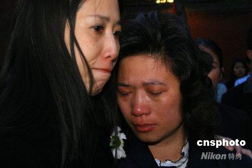 當地時間5月21日晚,英國華僑華人在倫敦華埠舉行燭光追思會,哀悼在四川大地震中遇難的同胞。圖為出生于臺灣的莊雅蘭(左)和華人律師李貞駒(右),在追思會上緊緊相擁,淚流滿面。中新社發 李鵬 攝