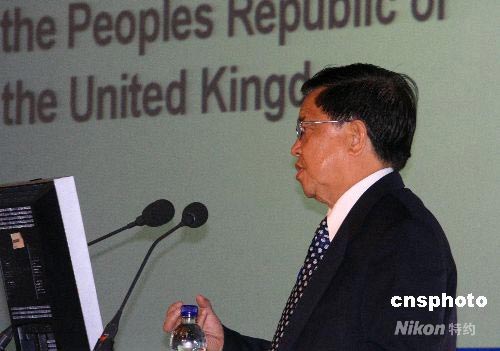 當?shù)貢r間6月3日上午,“博鰲亞洲論壇國際資本峰會”在倫敦開幕。這是博鰲亞洲論壇首次在亞洲以外地區(qū)舉行國際會議。圖為論壇秘書長龍永圖致辭。中新社發(fā) 李鵬 攝