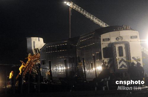 美國洛杉磯近郊當地時間九月十二日下午發生一起客運列車與貨運列車相撞的嚴重事故,至少造成十人死亡,一百三十五人受傷。當晚,救援人員仍在現場搜救,警方估計死亡人數很可能還會上升。中新社發 張煒 攝