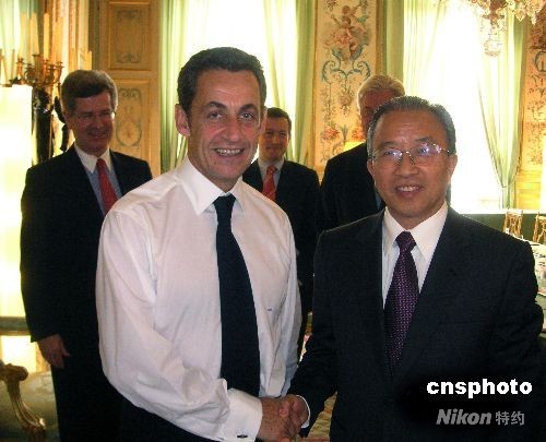 法國總統薩科齊七日會見了正在巴黎訪問的中國國務委員戴秉國。薩科齊表示,愿以即將召開的第七屆亞歐首腦會議和第十一次歐中領導人會晤為契機,將法中和歐中全面戰略伙伴關系推向更高水平。中新社發 法芬 攝