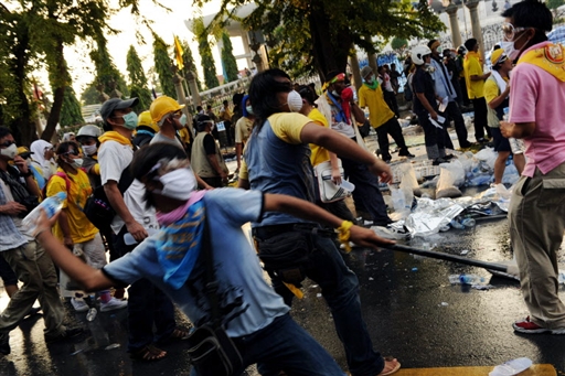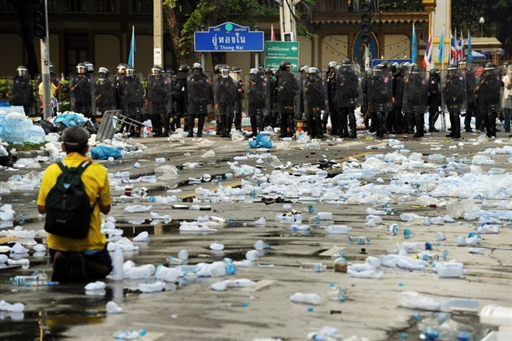 10月7日,泰國首都曼谷持續發生反政府組織人民民主聯盟與警方之間的沖突,騷亂現場一片狼藉。