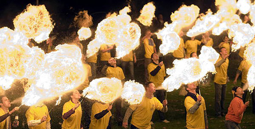 10月15日,在荷蘭艾恩德霍芬,理工大學的267名學生參加集體噴火活動。這些學生打破原先為115人共同創造的集體噴火吉尼斯世界紀錄。