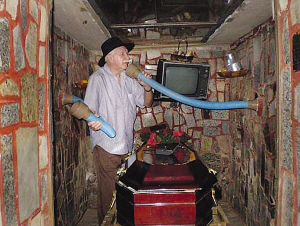 據(jù)和弗洛伊德結(jié)婚52年的妻子對記者稱,自從她開始認識弗洛伊德以來,他就一直擔(dān)心自己被活埋了。為了擺脫被“活埋”的恐懼,弗洛伊德竟然親自為自己建造了一個“逃生墓穴”,這個用石頭造成的“逃生墓穴”和普通去世者安葬的墓穴顯然大不一樣,因為它里面不僅有電視機、水罐、水果箱,甚至還有四個通風(fēng)口,新鮮的空氣可以通過墓穴頂部的通風(fēng)管道流進墓穴中。更讓人感到不可思議的是,在棺材旁邊還裝有兩個自制的“求救擴音器”,這兩個擴音器通過管道通向墓穴外面的塑料喇叭。