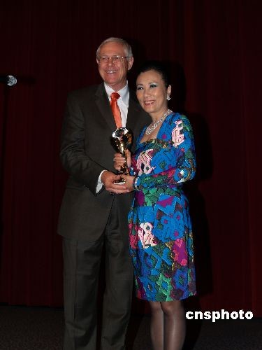 當(dāng)?shù)貢r(shí)間11月4日,中美電影節(jié)在美國洛杉磯好萊塢盛大開幕,1百多部中國和美國電影參加競(jìng)選,評(píng)選出45部中美電影,再從中選出10部電影,頒發(fā)“金天使獎(jiǎng)”。中美電影明星齊集好萊塢,1000多人參加。洛杉磯縣政委員安東諾奇向香港影視紅星汪明荃頒“香港藝人杰出貢獻(xiàn)獎(jiǎng)”。中新社發(fā) 盧威 攝