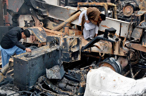 駐阿富汗美軍和北約部隊設在巴基斯坦境內的兩個后勤轉運站7日幾乎同時遭武裝分子偷襲,至少有160輛大貨車被炸毀。這是駐阿美軍后勤補給線遭受的最慘痛損失。據悉,本次襲擊發生在巴基斯坦西北部邊境城市白沙瓦附近的貨場內。