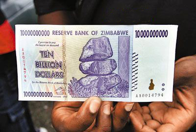 津巴布韋政局動蕩,經濟惡化和嚴重通脹,央行前日起正式發行面額為10億、50億和100億的新鈔,創下世界之最。該國一周前才發行了面額1千萬、5千萬和1億的3種新鈔。