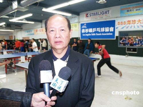 12月28日,美國亞美體育協會和洛杉磯乒乓球協會主辦2008年 “團結杯”乒乓球比賽開賽,共有16支華人乒乓球隊、50余名選手參加逐角。美國亞美體育協會會長呂詩澄向美國媒體介紹在海外推展乒乓球運動的體驗。中新社發 盧威 攝