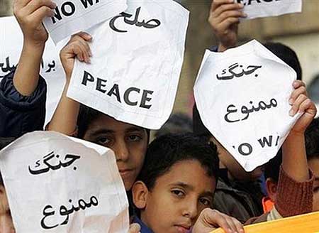 伊朗示威者高舉呼吁和平的旗幟在聯合國駐德黑蘭辦事處前示威。以色列襲擊加沙造成重大人員傷亡。