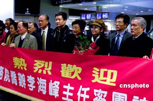 當地時間二月十日,中國國務院僑辦主任李海峰率領“文化中國·四海同春”藝術團一行抵達舊金山,開始為期四天的藝術之旅,與當地華人華僑共慶新春。中國駐舊金山總領事高占生、華商總會會長黃錫海及顧問池洪湖、魏需遜等僑界代表到機場迎接。 中新社發 陳鋼 攝