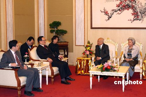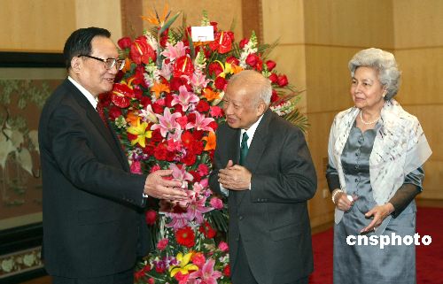 2月4日,受中國國家主席胡錦濤和國務院總理溫家寶的委托,國務委員唐家璇專程看望在北京的柬埔寨太皇諾羅敦·西哈努克和太后諾羅敦·莫尼列·西哈努克。中新社發 盛佳鵬 攝