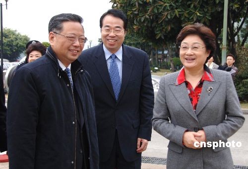 二月十九日,“海峽西岸鬧元宵 全球華人盼團圓”活動在福建福州盛大開幕。國務院僑務辦公室主任李海峰(右)與福建省長黃小晶(左)在活動中親切交談。中新社發 鄭祚聲 攝