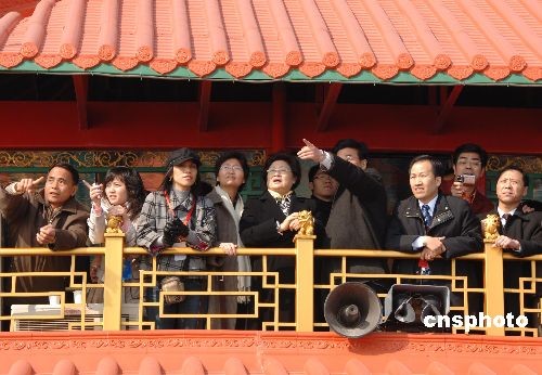 2月21日,中國國務院僑辦主任李海峰(左五)和前來參加“海峽西岸鬧元宵,全球華人盼團圓”活動的五百多位臺港澳僑胞一起乘坐“成功”六號仿古游船,觀賞金門、環鼓浪嶼風光。中新社發 鄭祚聲 攝