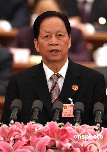 3月10日上午,十一屆全國人大一次會議在北京人民大會堂舉行第三次全體會議,最高人民法院院長肖揚作最高人民法院工作報告。中新社發 任晨鳴 攝