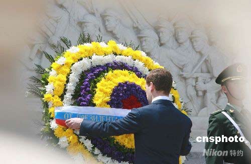 俄羅斯總統(tǒng)向人民英雄紀念碑敬獻花圈