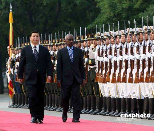 中國國家副主席習(xí)近平,6月10日在北京人民大會(huì)堂外廣場舉行儀式,歡迎蘇丹共和國副總統(tǒng)阿里·奧斯曼·穆罕默德·塔哈訪華。應(yīng)習(xí)近平邀請,蘇丹共和國副總統(tǒng)阿里·奧斯曼·穆罕默德·塔哈于6月9日至15日對中國進(jìn)行正式訪問。中新社發(fā) 任晨鳴 攝