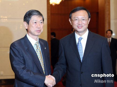 8月17日,中國外交部部長楊潔篪在北京釣魚臺國賓館會見日本外相高村正彥。中新社發 廖文靜 攝