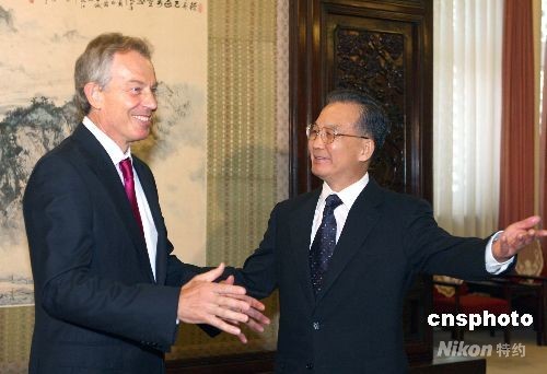 圖:中國(guó)總理溫家寶會(huì)見英國(guó)前首相布萊爾