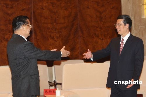 12月14日,中共天津市委書記張高麗在天津會見中國國民黨榮譽主席連戰。中新社發 盛佳鵬 攝