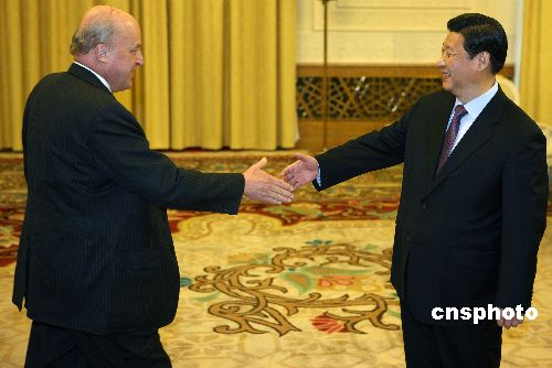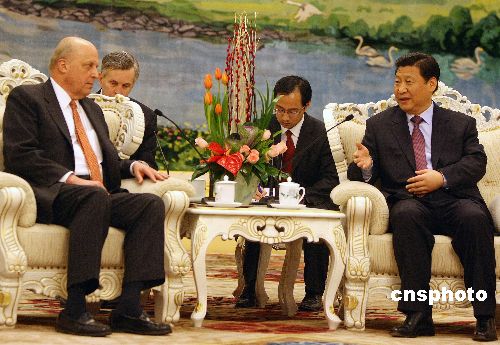 1月8日下午,中國國家副主席習近平在北京人民大會堂會見前來參加慶祝中美建交30周年活動的美國副國務卿內格羅蓬特一行。中新社發 任晨鳴 攝