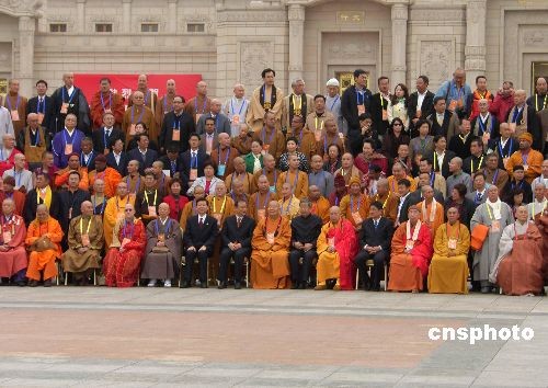3月28日,來(lái)自世界近50個(gè)國(guó)家和地區(qū)的1700多位高僧大德、著名佛教學(xué)者、政要和社會(huì)各界人士云集江蘇無(wú)錫靈山,出席第二屆世界佛教論壇開(kāi)幕式,共祈世界和諧、眾生安康。此次佛教論壇的主題為:和諧世界,眾緣和合。圖為參加第二屆世界佛教論壇的高僧大德、著名佛教學(xué)者、政要合影。中新社發(fā) 盛國(guó)平 攝