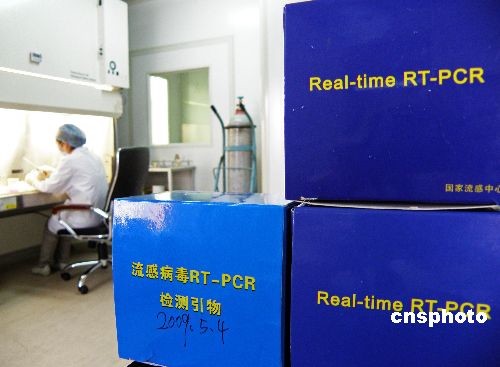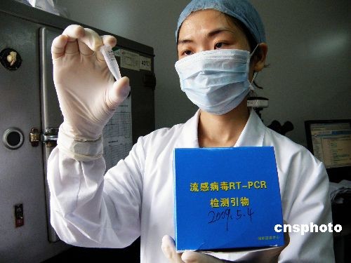 2009年5月5日,湖北省宜昌市疾病預(yù)防控制中心國(guó)家級(jí)流感網(wǎng)絡(luò)實(shí)驗(yàn)室內(nèi),工作人員在展示和預(yù)實(shí)驗(yàn)甲型H1N1流感病毒快速診斷試劑。甲型H1N1流感病毒快速診斷試劑由中國(guó)疾病預(yù)防控制中心和中國(guó)醫(yī)學(xué)科學(xué)院研制,可以在12小時(shí)內(nèi)檢測(cè)出樣本是否攜帶甲型H1N1流感病毒。據(jù)悉,甲型H1N1流感病毒快速診斷試劑已于2009年5月4日配發(fā)到中國(guó)84個(gè)流感網(wǎng)絡(luò)實(shí)驗(yàn)室。中新社發(fā) 劉君鳳 攝