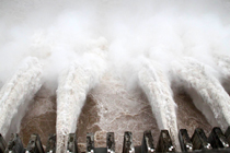 7月20日8時,峰值為7萬立方米/秒的洪水抵達三峽大壩。這是三峽工程建成后的首次大規模洪峰。大壩共開啟9個泄洪深孔,將洪水下泄流量控制在4萬立方米/秒左右,削減了4成多的洪峰下泄流量。中新社發 劉良偉 攝