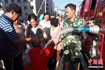 28日以來的一場暴雨讓吉林省多個地區遭遇罕見洪災,此后對災區的救援緊張進行。目前在永吉縣口前鎮,已有部分商戶恢復營業。圖為在重災區永吉縣,士兵將一名老婦轉移到安全地帶。中新社記者 張杰 攝