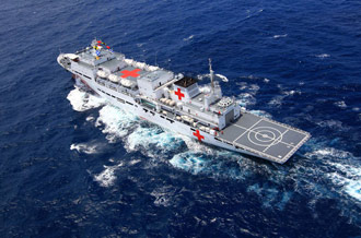 9月16日上午,2010年海峽兩岸海上聯合搜救演練在臺灣海峽的廈門、金門附近海域舉行。海峽兩岸海上搜救單位參演人數400多人,共動用搜救船舶14艘、救助飛機3架。其中大陸方面主要參演船舶9艘、救助直升機2架;臺灣方面主要參演船舶5艘、救助直升機1架。這是自2008年12月15日兩岸海上直航正式啟動以來,海峽兩岸海上搜救力量首次共同進行的大規模海陸空聯合搜救演練。圖為演練現場。中新社發 王東明 攝