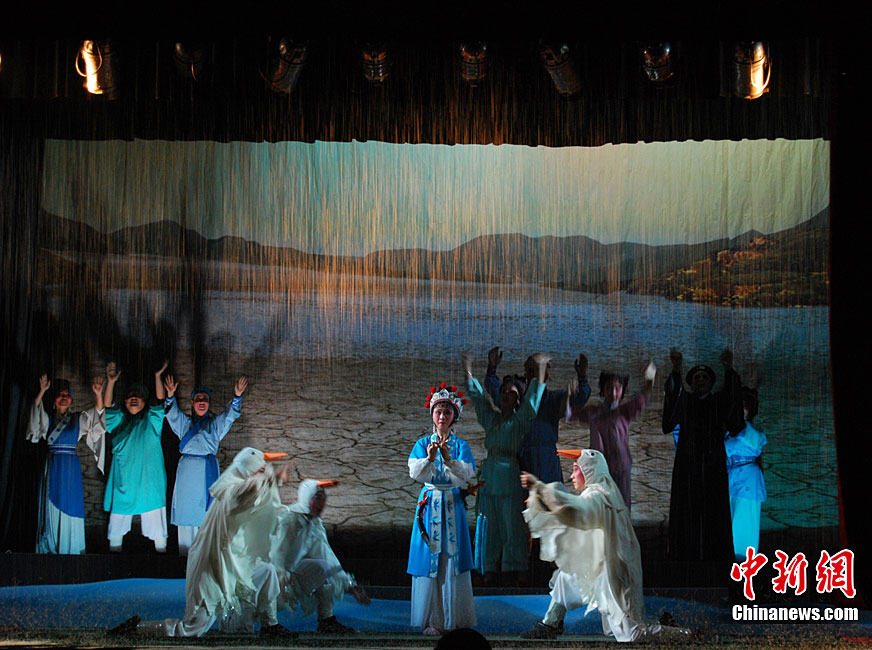 10月22日晚,中國首屆臨水夫人陳靖姑文化學術研討會獻演劇目,大型神話閩劇《臨水夫人陳靖姑》在陳靖姑祖廟所在地——福建古田精彩上演。該劇由古田縣閩劇團演出,共有《陳靖姑出世》、《蛇鬼禍害》、《延婚離家》、《結義學法》、《婚禮劍影》、《蛇鬼陰謀》、《哭別嬰兒》、《閩江祈雨》、《得道臨水》、《天上人間》10個場次,講述了陳靖姑降妖除魔、救助婦孺的感人事跡。兩岸媽祖宮廟代表人和當地信眾,共同觀看了此次演出。李松 攝