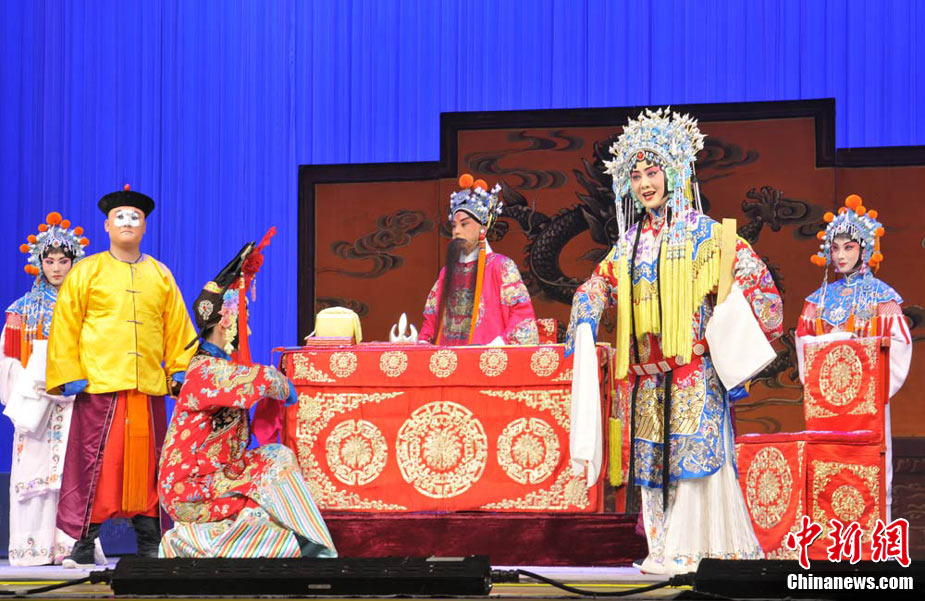 11月23日晚,由京劇名家于魁智率領的國家京劇院一團的京劇演員在蘭州金城大劇院為蘭州學子送上“京劇名家進校園”精美的文化大餐。這次演出活動是“2010甘肅省高雅藝術進校園”活動的重要組成部分。楊艷敏 攝