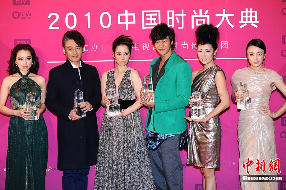 12月22日晚,由北京電視臺和時尚傳媒集團聯(lián)合主辦的2010中國時尚大典在北京精彩上演。張藝謀、黃曉明、何潤東、立威廉、翁虹、秦嵐、張靚穎、愛戴、阿朵等眾星云集讓現(xiàn)場星光熠熠。2010時尚大典以“時尚改變生活”為主題,精心設(shè)計并頒布了覆蓋時尚生活和時尚工業(yè)全局的18個大獎。藝術(shù)家葉錦添領(lǐng)軍16位中國新銳時裝設(shè)計師打造明星與名師的“跨界”時尚秀場。大典精彩鉅獻了一場集震撼視覺表達和時尚魅力呈現(xiàn)的饕餮盛宴。圖為阿朵和“筷子兄弟”組合,阿朵的黑色緊身衣和鹿角發(fā)型十分搶鏡。中新社記者 李學(xué)仕 攝