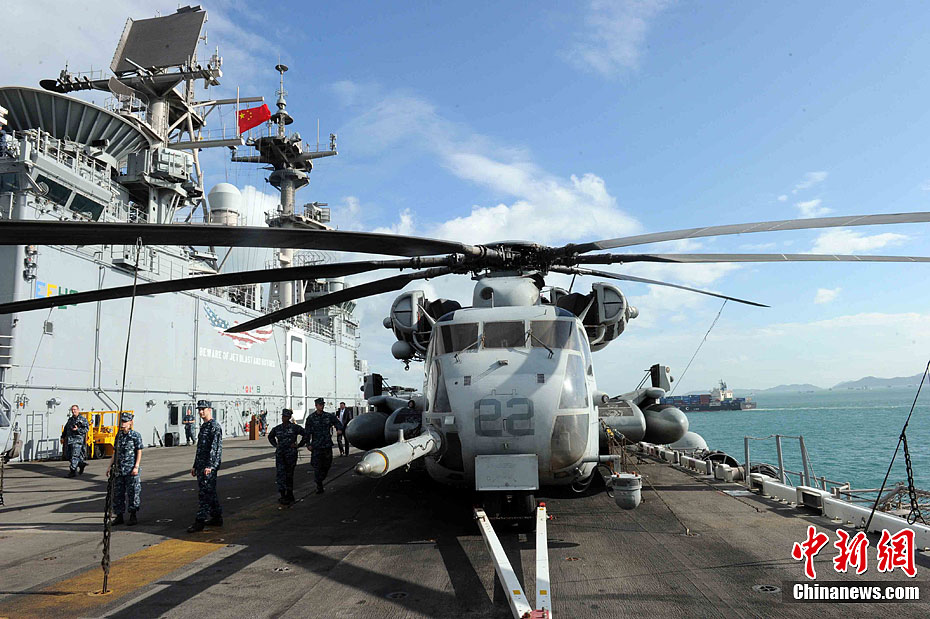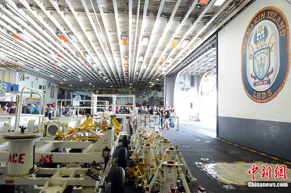 5月25日,美國海軍“馬金島號”兩棲攻擊艦(LHD8)抵達香港。“馬金島號”兩棲攻擊艦(LHD8)屬“黃蜂級”,排水量約為40,500噸,長約844英尺,可部署陸戰隊直升機和固定翼作戰飛機。“馬金島號”兩棲攻擊艦為美國海軍首艘混合動力戰艦。中新社發 任海霞 攝