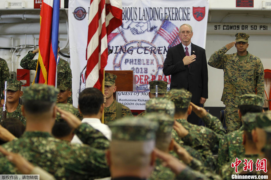當地時間10月8日,菲律賓蘇比克灣,菲律賓武裝部隊與美國士兵當日開始為期10天的兩棲登陸演習,加強雙方的防務合作。演習的內容主要包括人道主義救助、災難應對方案、海洋安全及地區開發。
