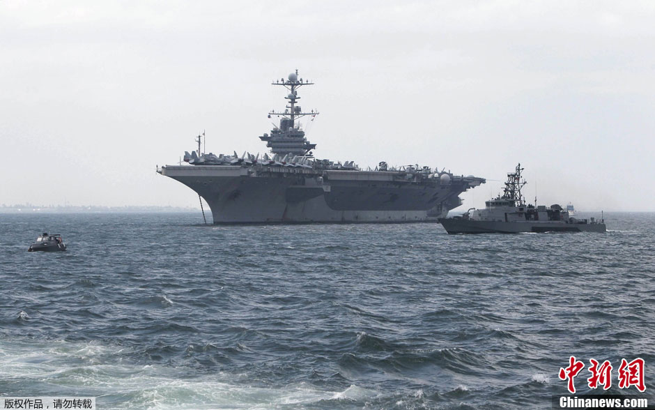 當地時間10月24日,美國海軍第七艦隊核動力航空母艦“喬治·華盛頓”號抵達菲律賓馬尼拉灣。