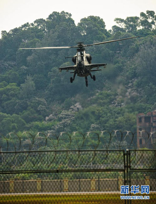 2012年11月11日,國(guó)產(chǎn)武直10武裝直升機(jī)在珠海三灶機(jī)場(chǎng)進(jìn)行飛行訓(xùn)練。當(dāng)日,我國(guó)自主研制生產(chǎn)的武直10武裝直升機(jī)在珠海三灶機(jī)場(chǎng)進(jìn)行了約20分鐘的適應(yīng)性飛行訓(xùn)練,做出倒飛、萊維斯曼機(jī)動(dòng)、高速大角度俯沖、低空小半徑盤旋等動(dòng)作,展現(xiàn)出其優(yōu)異性能,引來(lái)航展現(xiàn)場(chǎng)觀眾頻頻喝彩。楊光 攝 圖片來(lái)源:新華網(wǎng)