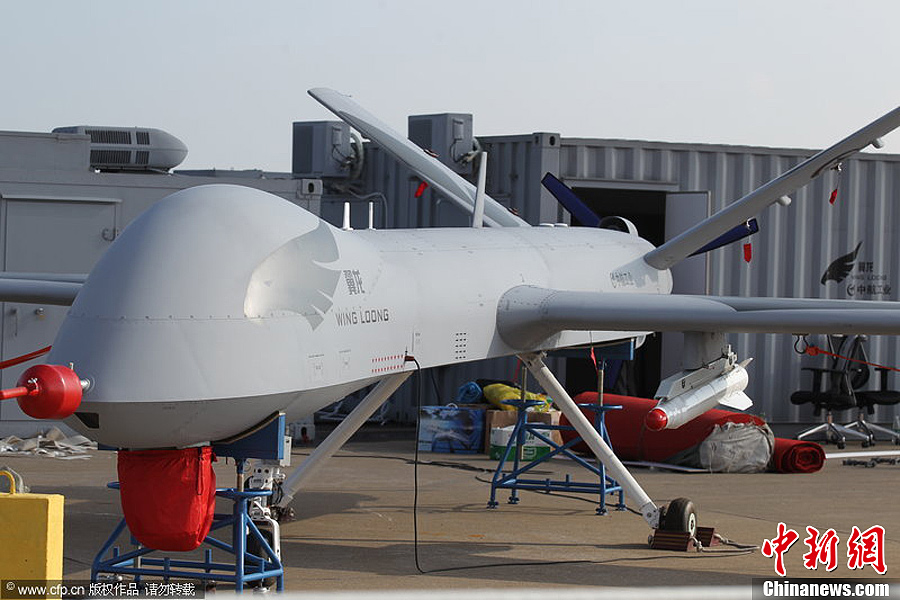 11月10日,廣東省珠海市,航展靜態展示區的翼龍無人機。中航工業自主研制的“翼龍”無人機將在11月13日至18日的珠海航展上靜展。圖為航展靜態展示區的翼龍無人機。鐘凡 攝 圖片來源:CFP視覺中國