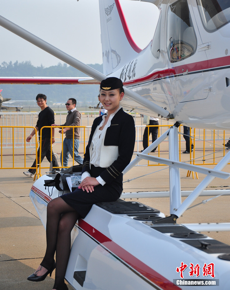 每一屆珠海航展都會有許多佳麗現(xiàn)身,而這次航展上的直升機模特更是讓觀眾大飽眼福。中新網(wǎng)記者 陳海峰 攝