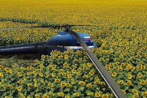 直升機迫降向日葵花田
